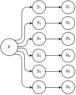 Нетрудно убедиться, что оба рисунка (рис. 4 и рис. 5) в структурном отношении эквивалентны. В данном случае под символом К мы понимаем термин «Некоторые принципы кредитования», под символами S1, S2, S3, S4, S5, S6 – наименования конкретных принципов, а под символами R1, R2, R3, R4, R5, R6 – соответствующие расшифровки (разъяснения) конкретных принципов.